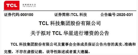 3 月 31 日消息,深交所上市公司 TCL 科技昨晚發布公告稱,擬向 TCL 華星增資 50 億元,持股比例提升至 90.72%。