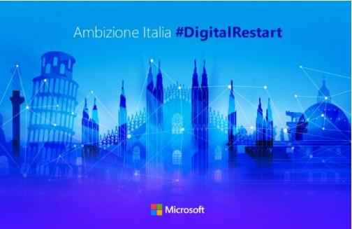 "Ambizione Italia #DigitalRestart "還包括在未來三年內,與合作伙伴 Fondazione Mondo Digitale 和合作伙伴學院計劃一起重點培養約 150 萬名學生、專業人員和失業公民。