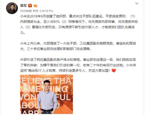 那么,外部高管空降是不是小米的只要策略呢?5 月 10 日晚,雷軍就詳細(xì)解讀了小米的干部選拔原則。