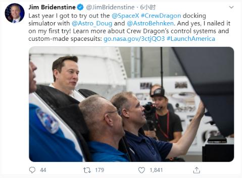 NASA 局長 Jim Bridenstine 周二也在推特上提醒大家,他在去年的第一次嘗試中就通過了模擬器測試。