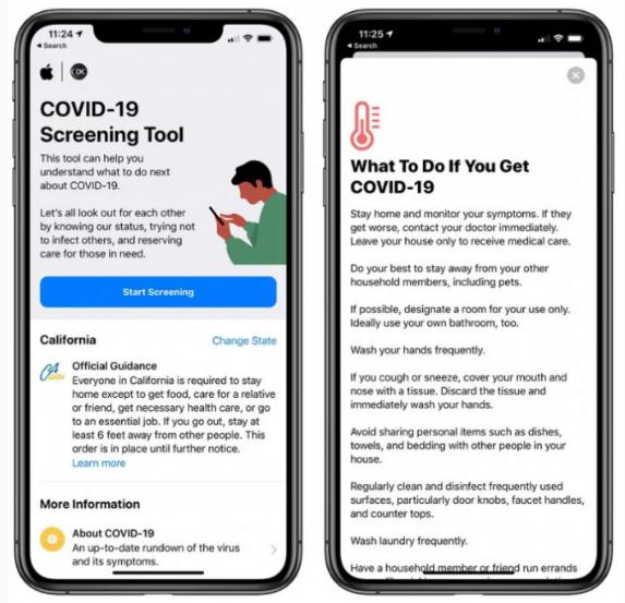 據外媒 Macrumors 報道,蘋果公司周四更新了其 COVID-19 篩查 App,旨在幫助人們保持知情,并采取適當的步驟來限制新冠病毒的傳播。此次更新的內容包括為醫護人員提供的更新建議,以配合美國疾病預防與控制中心(CDC)的指導方針,以及如果民眾已經暴露于 COVID-19 病毒,則需要隔離的最佳措施。