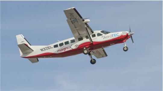 據(jù)了解,該飛機(jī)名為 eCaravan,在華盛頓的一條跑道上起飛后飛行了 28 分鐘。eCaravan 發(fā)動機(jī)制造商 MagniX 與航空公司 AeroTEC 合作推出,可搭載 10-14 人,續(xù)航高達(dá) 912 海里(1689 公里)。
