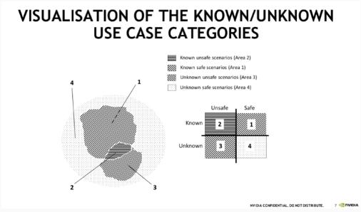 最需要關注的是區域3,即未知的不安全場景,由于該場景中存在著巨大的風險,如果我們對其一直處于無法悉知的狀態,我們就無法評估其中的風險會對無人駕駛帶來多大的影響。