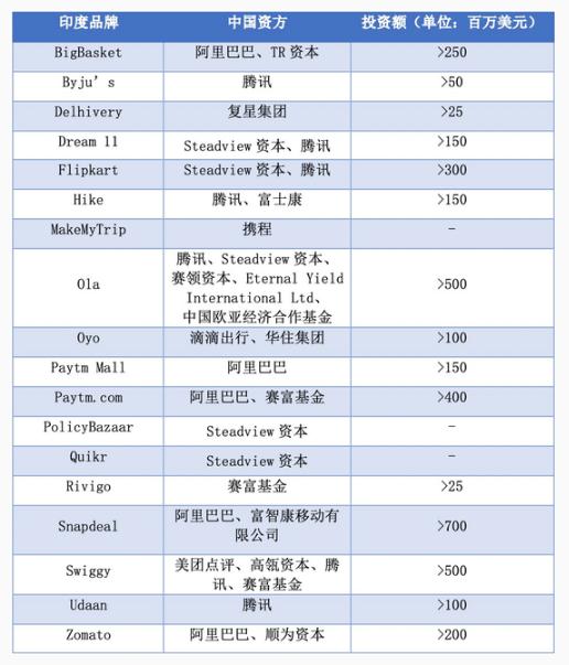 近兩年,中國資本十分熱衷于投資印度市場。印度全球關系智庫 Gateway House 今年 3 月發布報告顯示,中國科技投資者對印度初創公司的投資額預計超過 40 億美元。截至 2020 年 3 月,印度 30 家獨角獸公司中,有 18 家公司的投資者中有來自中國的投資者。