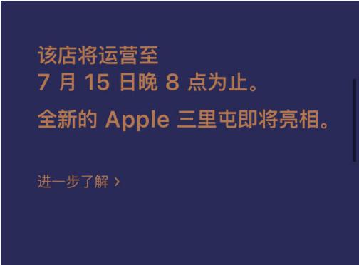 同時(shí),官網(wǎng)也宣布舊的 Apple Store 三里屯店將于 7 月 15 日晚 8:00 正式關(guān)店停止?fàn)I業(yè),這也是中國(guó)首家 Apple Store,開(kāi)業(yè)于 2008 年 7 月 19 日,至今運(yùn)營(yíng)已達(dá)到了 12 年。