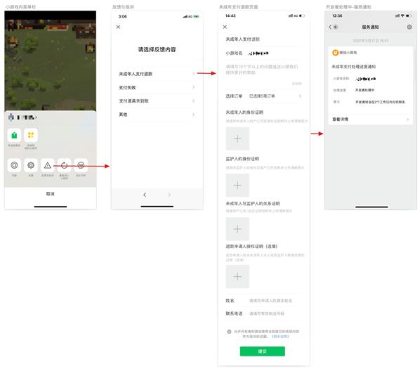 現在,微信小游戲全面升級了未成年人非理性消費處理機制:在小游戲的“反饋與投訴”頁面的“支付問題”中,上線了獨立的“未成年人支付退款”入口。
