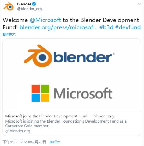 去年有兩家知名公司(育碧和 AMD)先后加入了 Blender 基金會(huì)以更好地協(xié)助開(kāi)發(fā) Blender 項(xiàng)目以及提供資金。現(xiàn)在,微軟為了表達(dá)對(duì) Blender 的支持,也以企業(yè)黃金會(huì)員的身份加入了 Blender 基金會(huì)的 Development Fund 項(xiàng)目。