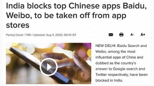 據(jù)《印度時(shí)報(bào)》報(bào)道稱,印度政府已要求該地區(qū)的谷歌和蘋(píng)果應(yīng)用商店下架百度搜索和新浪微博。知情人士稱,印度互聯(lián)網(wǎng)服務(wù)提供商也已被要求禁用這兩款應(yīng)用。