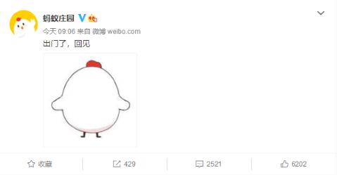 與此同時,螞蟻莊園官方微博寫了句“出門了,回見。”這次小雞的消失引發了全網集體找尋,很多網友在社交平臺發帖詢問“小雞去哪了”。就連螞蟻森林也在微博@螞蟻莊園,是不是把雞給燉了。