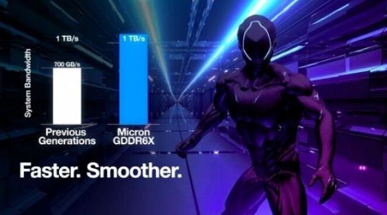 另外,基于此前與 NVIDIA 在 GeForce RTX 顯卡產(chǎn)品(搭載 GDDR6)的合作,美光革新了 GDDR6X 的內(nèi)存/GPU 接口,增強了下一代游戲應用中的復雜圖形工作負載性能。