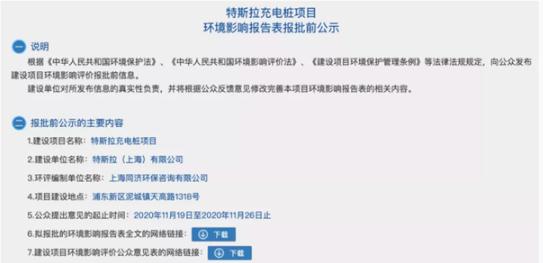 日前,我們于網絡渠道獲悉,特斯拉充電樁項目環境影響報告表處于報批前公示中,公示期到 11 月 26 日結束。該報告顯示,特斯拉擬斥資 4200 萬元在上海浦東新區建設新工廠。