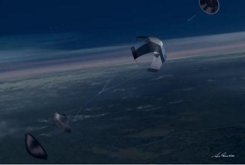 圖1:日本小行星取樣任務探測器 Hayabusa2 太空艙降落在地球上的藝術渲染圖