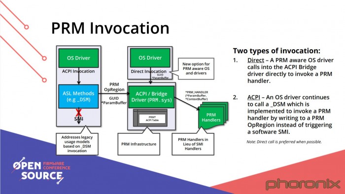 通過 TianoCore 的 edk2 過渡 PlatformRuntimeMechanisms 分支,穩(wěn)定了 PRM 的開源通用基礎(chǔ)結(jié)構(gòu)實(shí)現(xiàn)。還提供了開放源代碼的示例 PRM 模塊以及文檔。實(shí)際的 PRM 規(guī)范雖然仍待 ACPI 和 UEFI 工作組確定,但聽起來將在 2021 年敲定。最新的 Windows Insider 版本已經(jīng)提供了初步的支持,而 Linux 對 PRM 的支持將在 PRM 規(guī)范發(fā)布之后部署,并且內(nèi)核代碼經(jīng)歷了通常的上游審查過程。