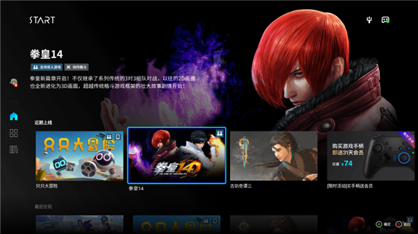 現在,云游戲平臺上線了 14 款游戲。(首批上線的游戲有《古劍奇譚三》、《拳皇 14》、《侍魂曉》、《波西亞時光》、《只只大冒險》、《不思議的皇冠》、《彩虹墜入》、《軒轅劍外傳:穹之扉》、《NBA2K ONLINE 2》等)