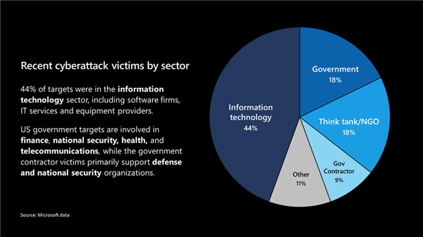 史密斯還指出,黑客攻擊受害者名單中,44% 是信息技術公司,如軟件公司和設備提供商,而美國政府機構只是占據了一小部分。