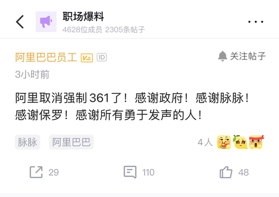 阿里巴巴的強制“361”考核制度,讓最低績效標準”3.25“這個數字被賦予了特殊含義。今年 3 月 25 日凌晨,淘寶 IOS APP 出現大面積 bug,時間長達 12 小時,這次的“325 bug 事件“也被網友戲稱為程序員對低績效的“報復行為”,阿里巴巴隨后在微博回應稱之為”謠言“。