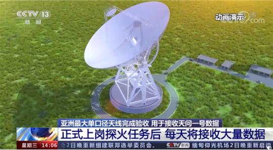 據悉,該天線是目前亞洲最大的單口徑全可動天線,可接收來自 4 億公里之外微弱信號數據,將用于我國火星探測任務,負責接收“天問一號”回傳數據。