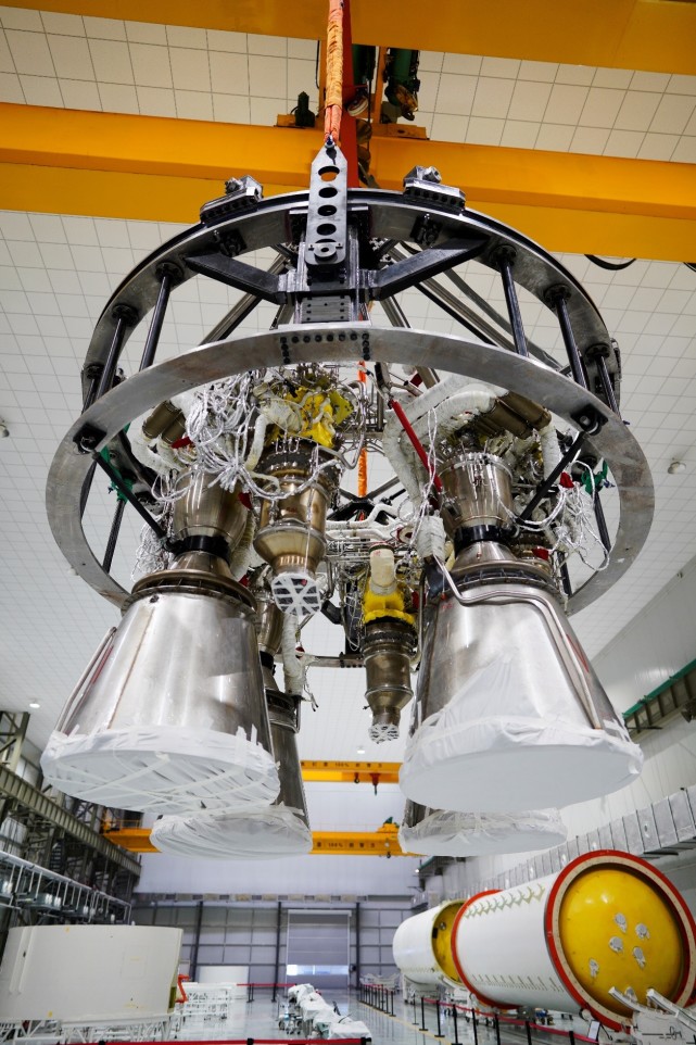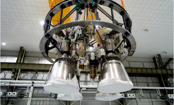 近日,藍箭航天空間科技股份有限公司(藍箭航天)完成朱雀二號液體運載火箭首臺一級四機發動機裝配工作。