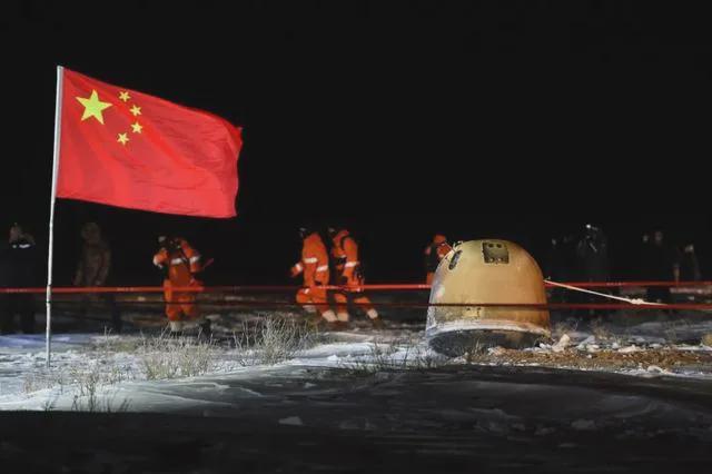 ▲資料圖片:2020 年 12 月 17 日凌晨,嫦娥五號返回器攜帶月球樣品,在內蒙古四子王旗預定區域安全著陸。