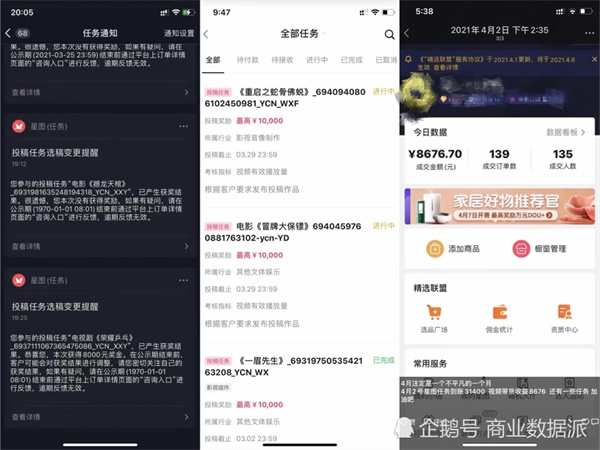 而在變現方面,不少博主是通過巨量星圖來接單。“巨量星圖”是抖音官方專為達人打造的流量變現平臺,博主達到一萬粉絲以上就可開通賬號,小博主可以通過星圖任務搶單,保底200元,最高1萬元/單,但是達到350萬以上的大中型體量博主就能按照粉絲量進行議價,350萬粉絲/萬,這還只是一單的價格。據《商業數據派》了解,體量在500萬以上的視頻剪輯博主每單最高價能超過2萬元,而類似“毒舌電影”這樣的超過5600萬的大博主,每單價格更是達到了15萬以上。