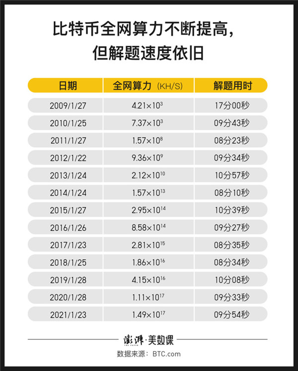 但解題時間并沒有隨著整體算力的增加而減少,因為題目的難度是隨著算力而變動。全網算力的迅速提升,挖礦難度也開始大幅上升。