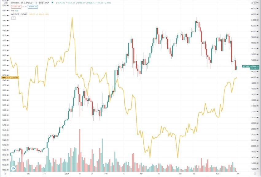 這瞬間帶來了比特幣和狗狗幣在內的大多數數字貨幣快速下挫。比特幣一度大跌1萬美元。截至北京時間5月16日11:43,比特幣仍在5萬美元以下,報47896美元。