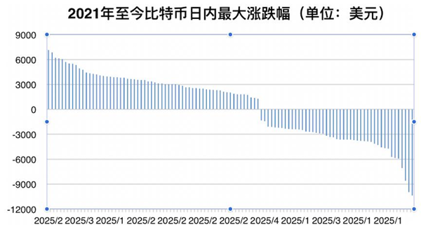 即便自2021年1月以來比特幣已經進入牛市,累計上漲了近2倍,但也經常發(fā)生暴跌,其中日最大跌幅超過5000美元的至少有7天,在2月22日和23日連續(xù)兩天的日內最大跌幅都超過了10000美元。本次比特幣暴跌的最大幅度也只有9000美元。