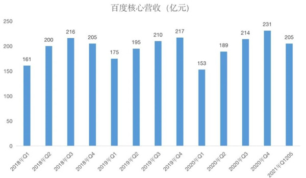 去年三季度,百度曾披露,百度APP日活躍用戶達(dá)到2.06億,而到去年底,百度APP的日活躍用戶回落到了2.02億。2020年一年,百度APP的日活躍用戶只增長了700萬,這相較于2019年增長3400萬可差距太大了。