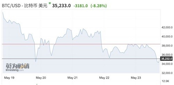 截至北京時間5月23日18:30,一枚比特幣的價格報35241美元,相較之下,今年4月,比特幣曾觸及64374美元的歷史新高。