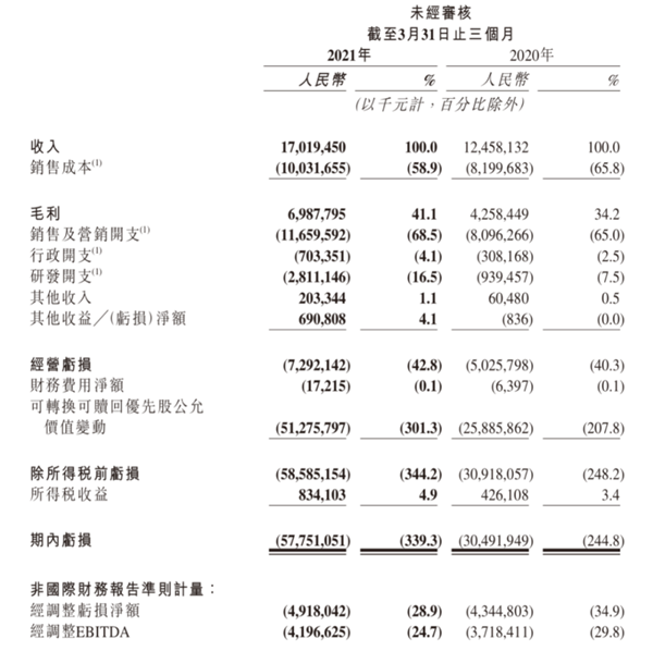 而主要因?yàn)檫@一季度最大手筆的營(yíng)銷(xiāo)投入,快手也迎來(lái)了近年來(lái)最大的單季虧損。根據(jù)財(cái)報(bào),經(jīng)調(diào)整凈虧損為49.18億元,同比增長(zhǎng)13.2%,比上個(gè)季度增長(zhǎng)了近6倍。不過(guò),與此同時(shí),快手的毛利率由去年同期的34.2%上升到了41.1%。