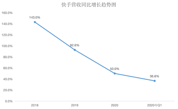 根據(jù)財(cái)報(bào),2021年第一季度,快手總收入為人民幣170億元,同比增長(zhǎng)36.6%。這一增速是放緩的。此前,2018年、2019年和2020年,快手的營(yíng)收同比增速是143%、92.6%和50%,上一季度,快手的營(yíng)收同比增速也達(dá)到了52.7%。當(dāng)然,增速的放緩可能與快手的營(yíng)收基數(shù)擴(kuò)大有關(guān),但這一趨勢(shì)確實(shí)也是值得關(guān)注的。