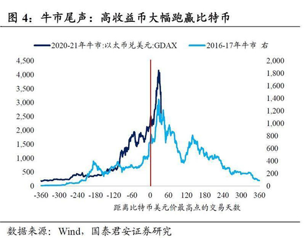 還有另一重似曾相識:在虛擬貨幣牛市的上半場,比特幣收益一馬當先;而當行情擴散,其他高收益數字幣大幅跑贏比特幣,場內加杠桿行為加劇,便意味著下半場到來了。