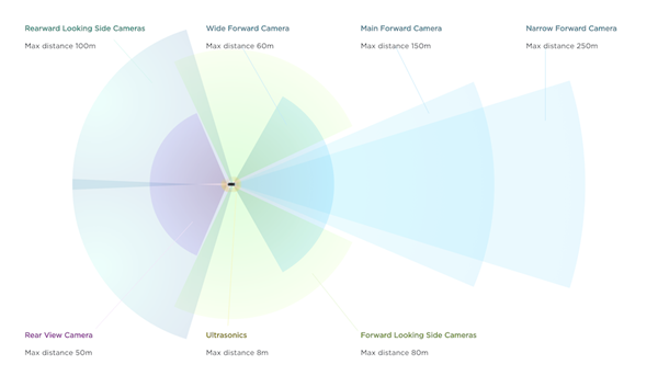 從傳感器配置上不難看出,視覺傳感器擁有比毫米波雷達更遠、更廣的探測距離,或許這是馬斯克希望取消毫米波雷達的第一個理由。