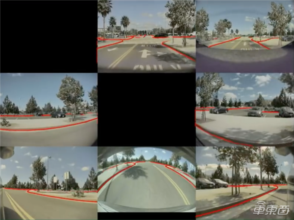 ▲特斯拉視覺系統預測的馬路邊緣和車道線
