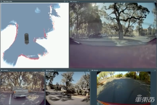 在計算出三維圖景之后,特斯拉甚至可以計算出車輛的“鳥瞰視圖”。也就是說,雖然車輛上方沒有攝像頭,但通過計算就能模擬出從車輛上方向下看的圖景。這樣一來,車輛離障礙物還有多遠的距離,車內都能直觀地看到。