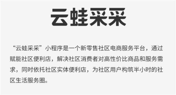 阿里在微信端上線社區團購小程序“云蛙采采”