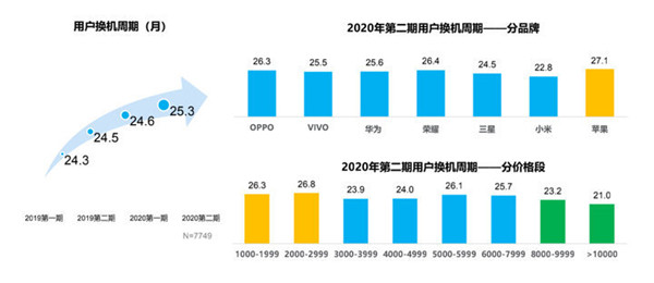 根據中國移動終端實驗室發布的報告,2020 年我國手機用戶平均換機周期達到了 25.3 個月,而換機原因中手機損壞所占比例為 25.6%。