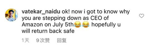 值得注意的是,這一天距離貝索斯的退休之日——從亞馬遜正式退下CEO的職位僅僅過去15天。