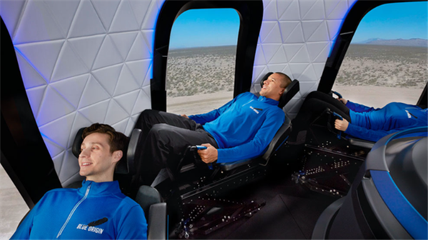 完成兩位貝索斯上天發射任務的將是New Shepard號運載火箭,它每次最多可送6人進行外太空體驗。太空艙每個位置都有屬于自己的窗戶,讓每個上天的富豪都能好好觀賞外太空景觀。值得注意的是,在返回地球表面之前,乘客能夠體驗到幾分鐘的失重。整個行程大約11分鐘。