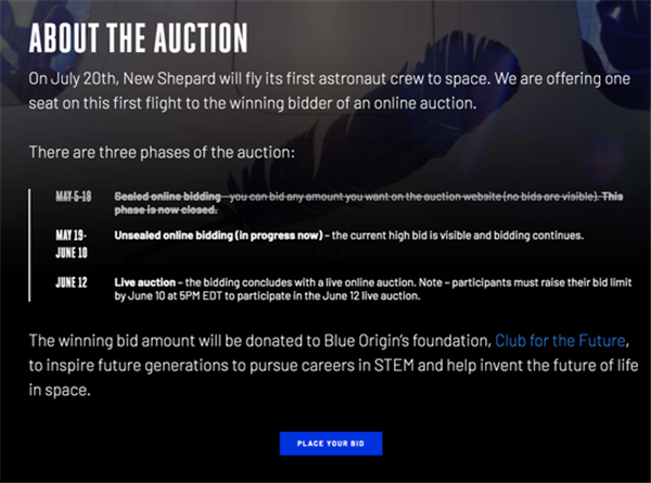 如果碰巧你也是富豪,可以登錄藍色起源競拍這個座位。當然,普通人也可以去隨時圍觀下這場拍賣——目前,一個座位已經被叫上了350萬美金的高價,不過這個能去外太空的價格還不如孫宇晨當年拍賣和巴菲特吃一頓飯貴。目前350萬美金還不是最終價格,最終入圍的富豪們將要在6月12日,也就是下周參與一場線上公開拍賣,最終爭搶一個座位。