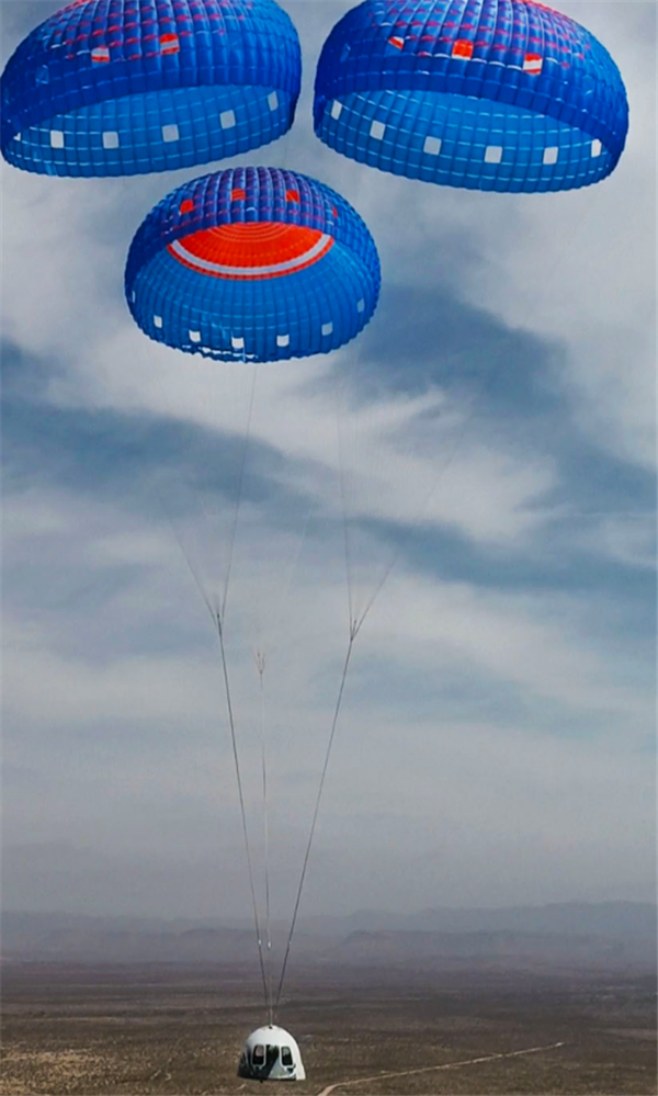最終,太空艙會利用降落傘平穩降落回地面。