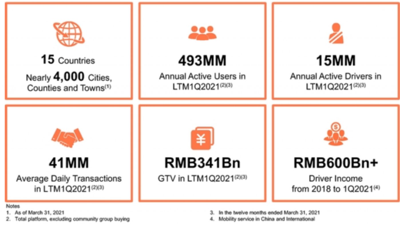 招股書顯示,截至2021年3月31日的12個月里,滴滴全球年活躍用戶為4.93億,全球年活躍司機1500萬。021年第一季度,滴滴中國出行擁有1.56億月活用戶,同期,Uber的月活躍消費者僅有9800萬。