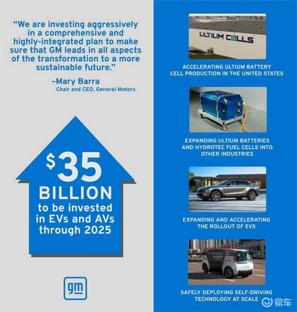 易車訊近日,我們從相關渠道獲悉,通用汽車計劃,到2025年時,針對純電動車和先進自動輔助駕駛技術的投資將增加至350億美元(約2239億人民幣),比最初計劃的支出額度增加了75%,此舉將增加旗下純電SUV的產量,并能生產更多的電池。