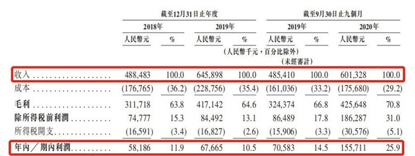 截至2020年前三季度,該公司錄得毛利率為70.8%,錄得凈利率為33.9%,吸金能力可見一斑。