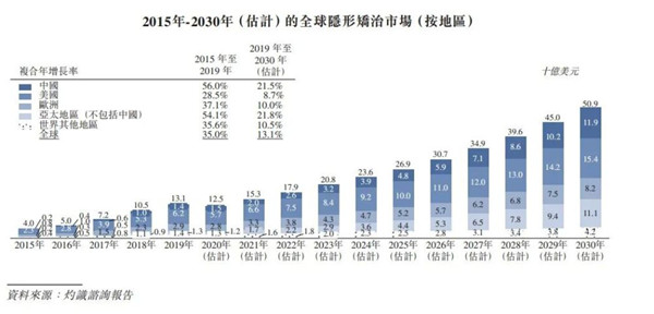 市場容量上,灼識咨詢報告顯示,中國作為全球第二大市場的整體隱形矯治市場,零售銷售收入預期將由2019年的14億美元增至2030年的119億美元,復合年增長率達21.5%。