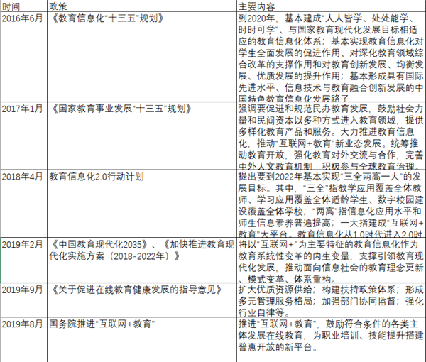 根據光子星球整理,早在2012年《教育信息化十年發展規劃(2011-2020年)》中就提出,到2020年,形成與國家教育現代化發展目標相適應的教育信息化體系,基本建成人人可享有優質教育資源的信息化學習環境等目標。