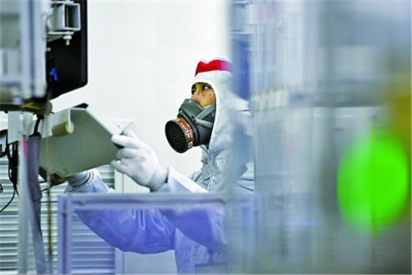 在天津力神鋰電池智能工廠的生產車間,員工在操控設備。新華社發