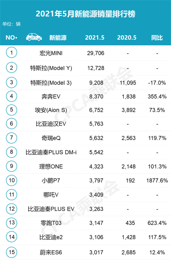 6月8日,乘聯(lián)會公布了5月國內(nèi)汽車銷量數(shù)據(jù)。意料之外的是,被負(fù)面新聞纏繞的特斯拉中國,并沒有出現(xiàn)銷量大跌的情況,5月仍售出了33,463輛新車,較4月份的25,845輛增長了29%。而意料之中的是,“五菱神車”宏光MINI EV以29,706輛的成績,繼續(xù)占據(jù)榜首。