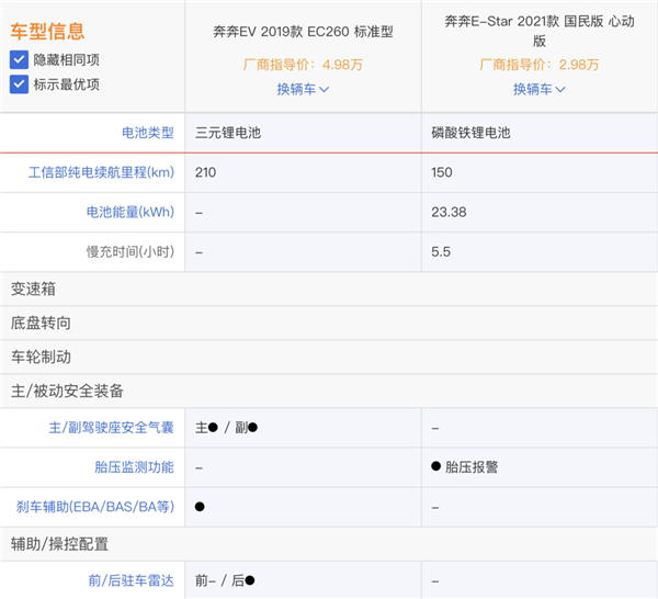 新款降價2萬賣,難道是廠家用心回饋消費者嗎?這位長安汽車4S店銷售告訴虎嗅,2.98萬元和3.98萬元的國民版取消了安全氣囊。作為對比,老款奔奔EV最低售價為4.98萬元的版本都標(biāo)配了主/副駕駛安全氣囊。