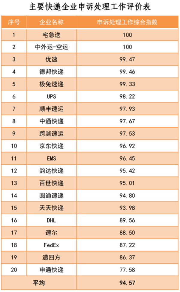 國家郵政局公布的5月郵政業用戶申訴情況通告顯示,中國郵政(EMS)申訴處理工作綜合指數高于韻達快遞、百世快遞、圓通快遞、天天快遞、申通快遞等。